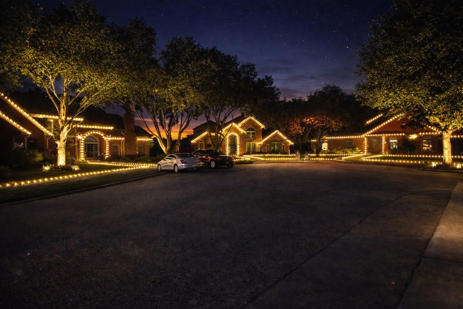 We custom-fit commercial-grade lights to match your rooflines and architecture, in any color or color combination you choose. Our full-service program includes professional installation, season-long maintenance, and complete removal after the holidays — so you can simply enjoy the season.